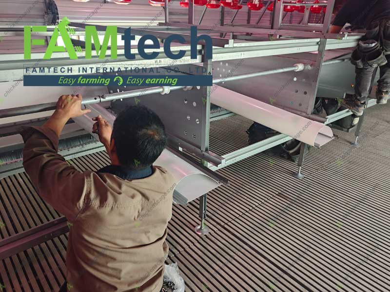 Each tier is equipped with nipple drinkers, offering chicken easy access to water. The limited water supply results in less spilling. - Manure cleaning